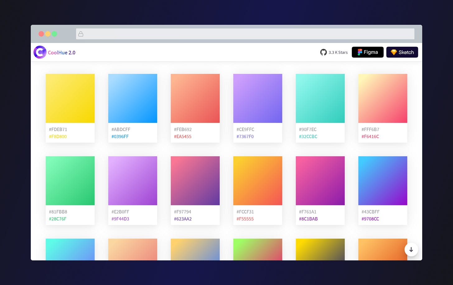 As mentioned in the Design Library section above, CoolHue 2.0 is a repository of gradients.